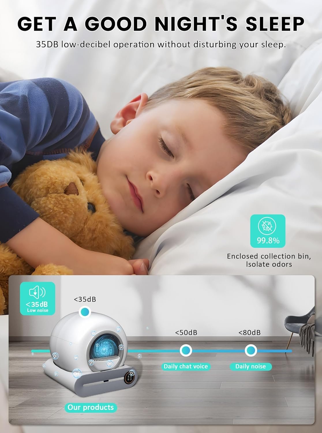 Keep your home clean with the DuckSky Automatic Self-Cleaning Litter Box. Its smart sensors and automatic cleaning system ensure a fresh, odor-free environment, while the large waste compartment accommodates multiple cats. Easy app and manual controls make scheduling effortless. Give your cats the comfort they deserve while simplifying your routine.