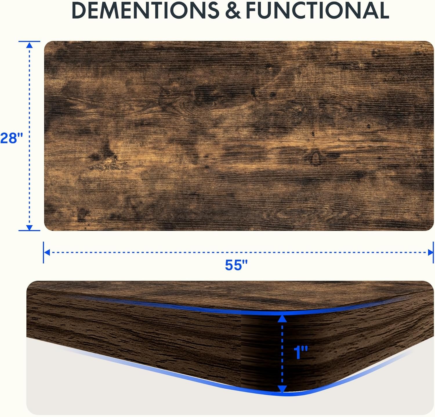 - Spacious 55″ x 28″ eco-friendly wood desktop