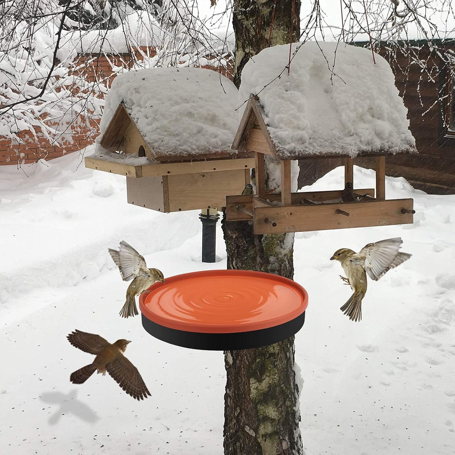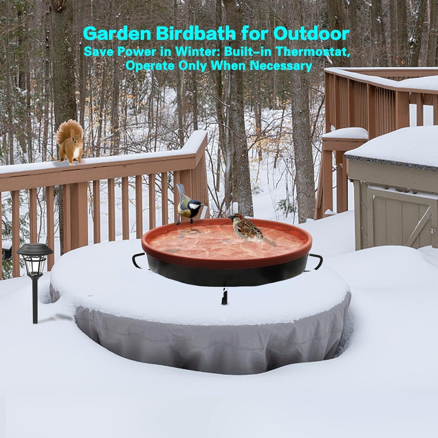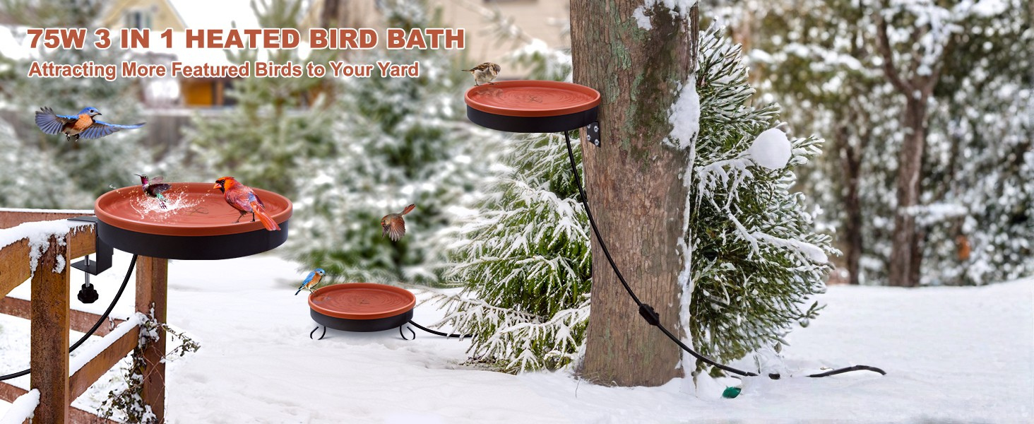 The GESAIL Heated Bird Bath offers year-round outdoor functionality with a thermostatically controlled 75-watt heater built into its terracotta-colored basin, perfect for preventing water from freezing in winter. Its detachable bowl and three mounting options (deck, clamp, or ground) make it both versatile and bird-friendly. Bring comfort to your feathered friends in any season — explore this all-weather solution today!